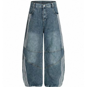 サイドラインが目を惹く、個性的なバギーデニムパンツ。パッチワークデザインが、着こなしに遊び心をプラスします。