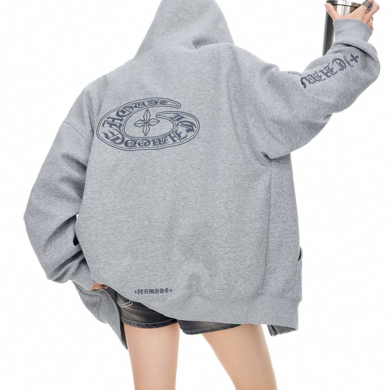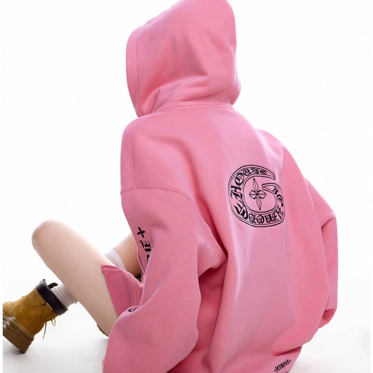 ゆったりとしたシルエットが魅力のフード付きスウェットシャツ。