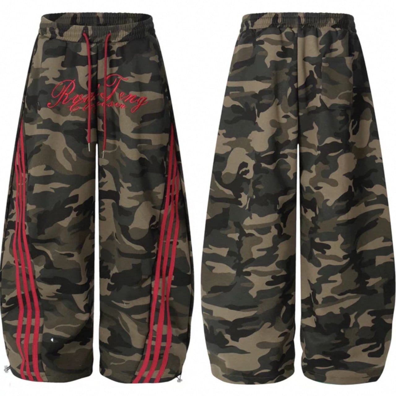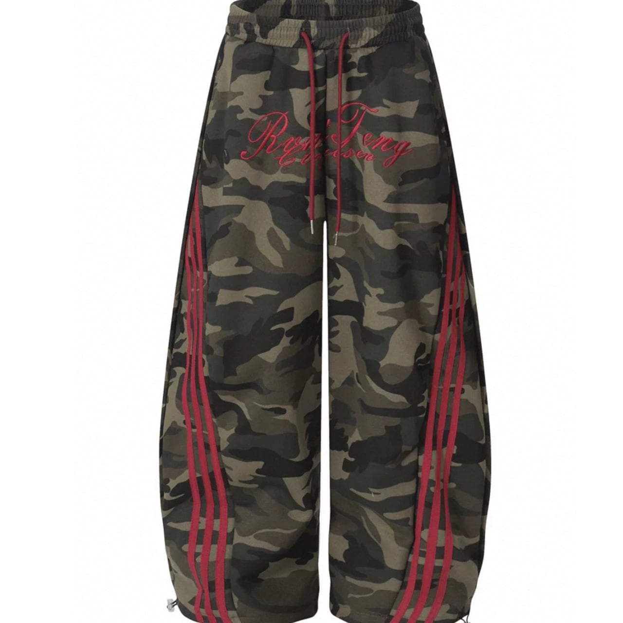カモフラージュ柄が目を引くワイドスウェットパンツ。