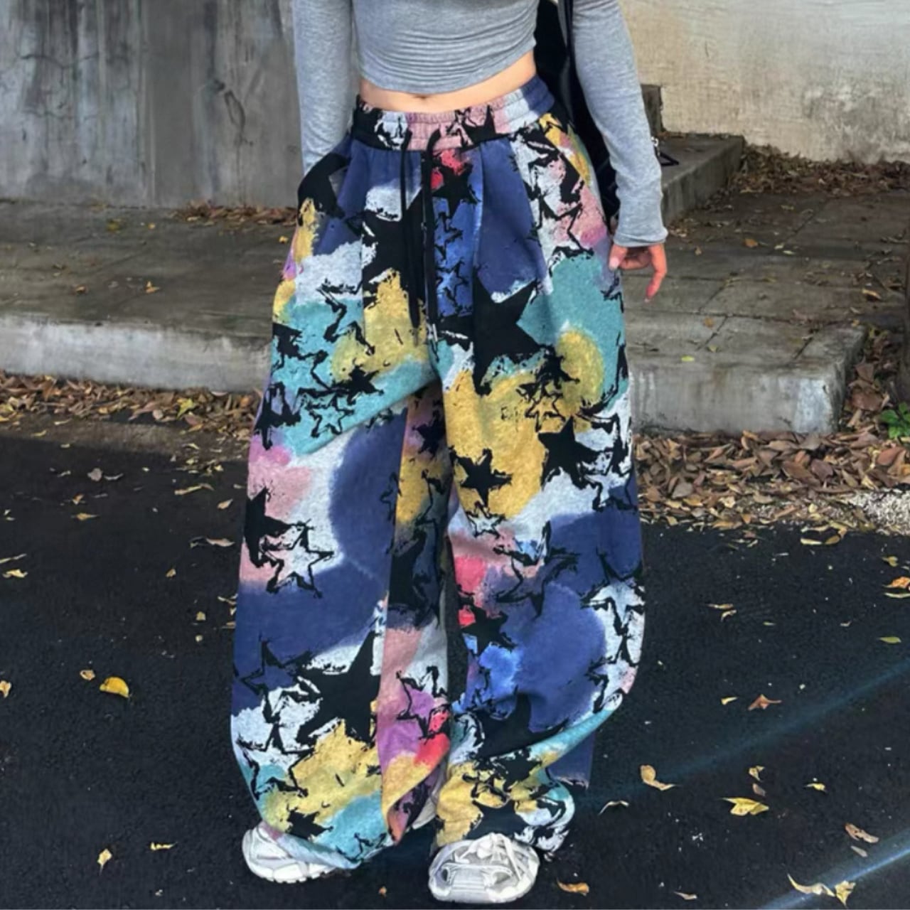 スターデザインワイドレッグ フルレングス パンツ ◆3col BL0445