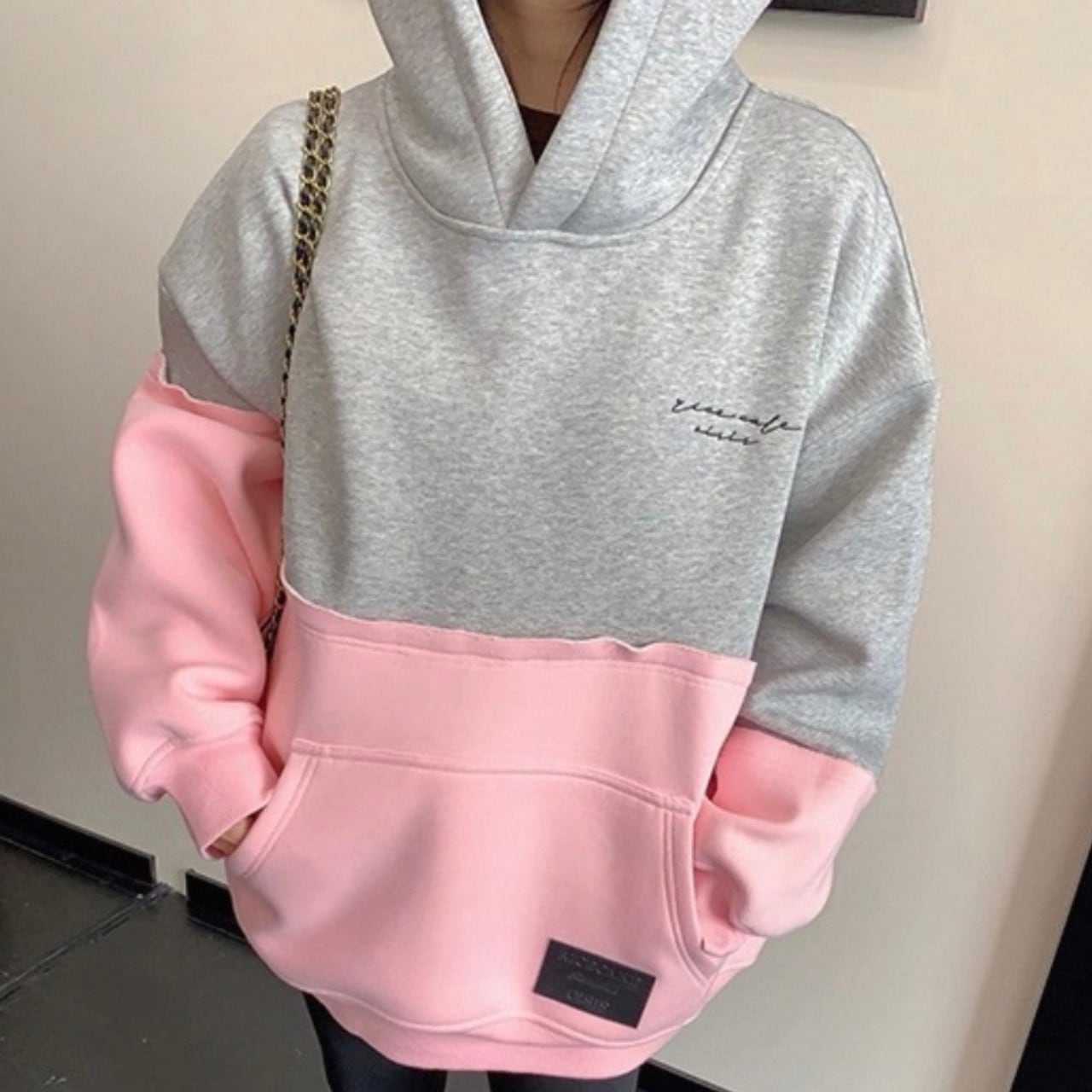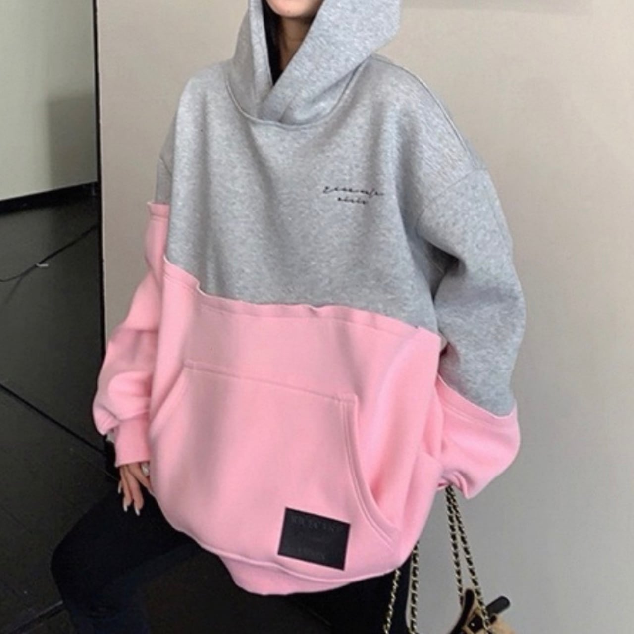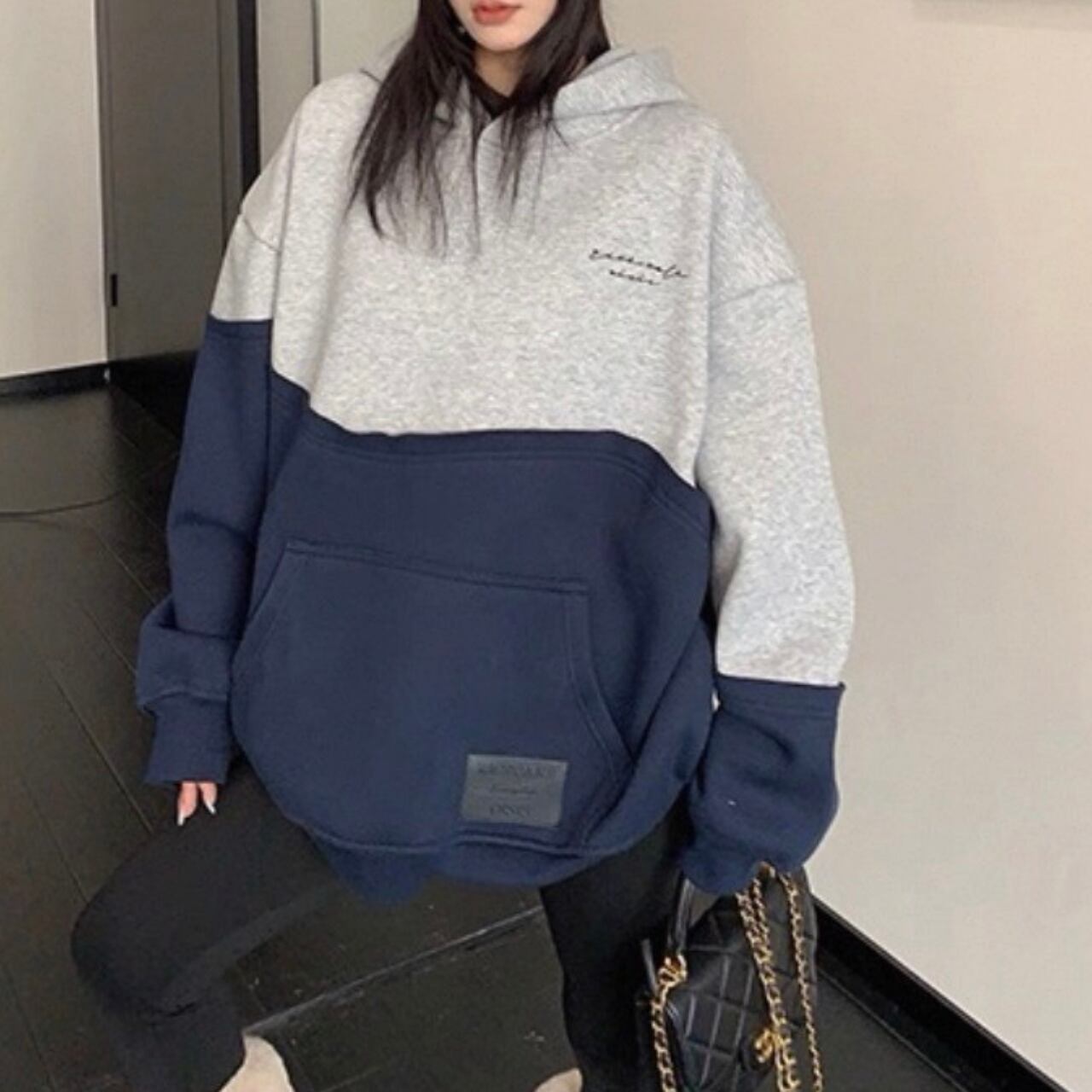 フード付き バイカラー オーバーサイズ スウェットシャツ◆ 2col BL0493
