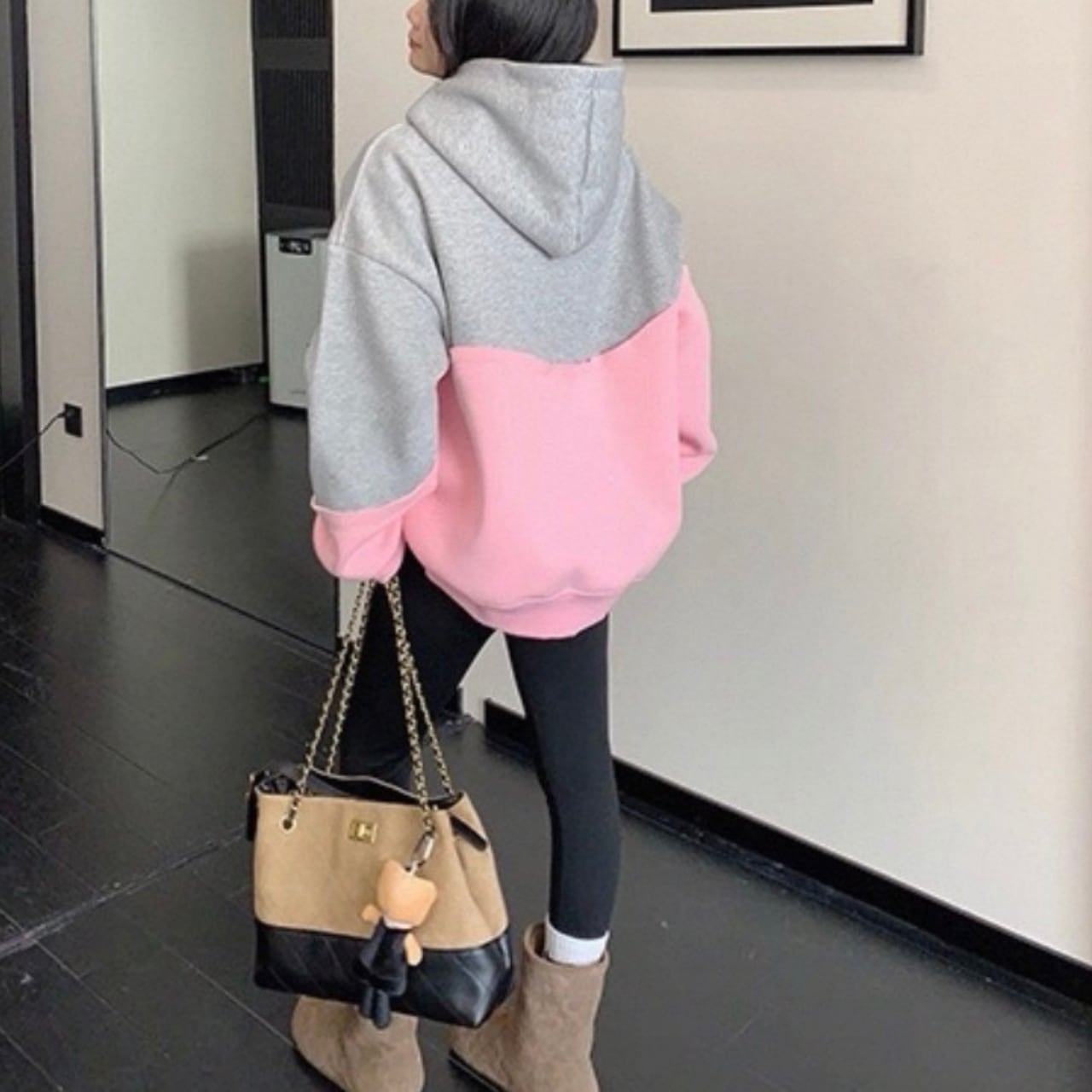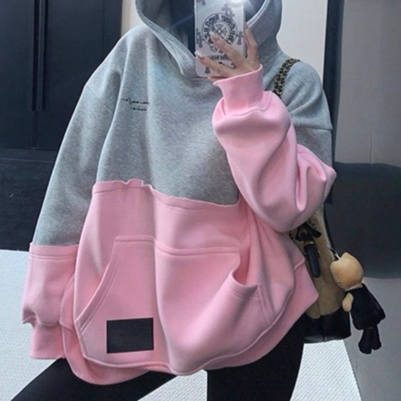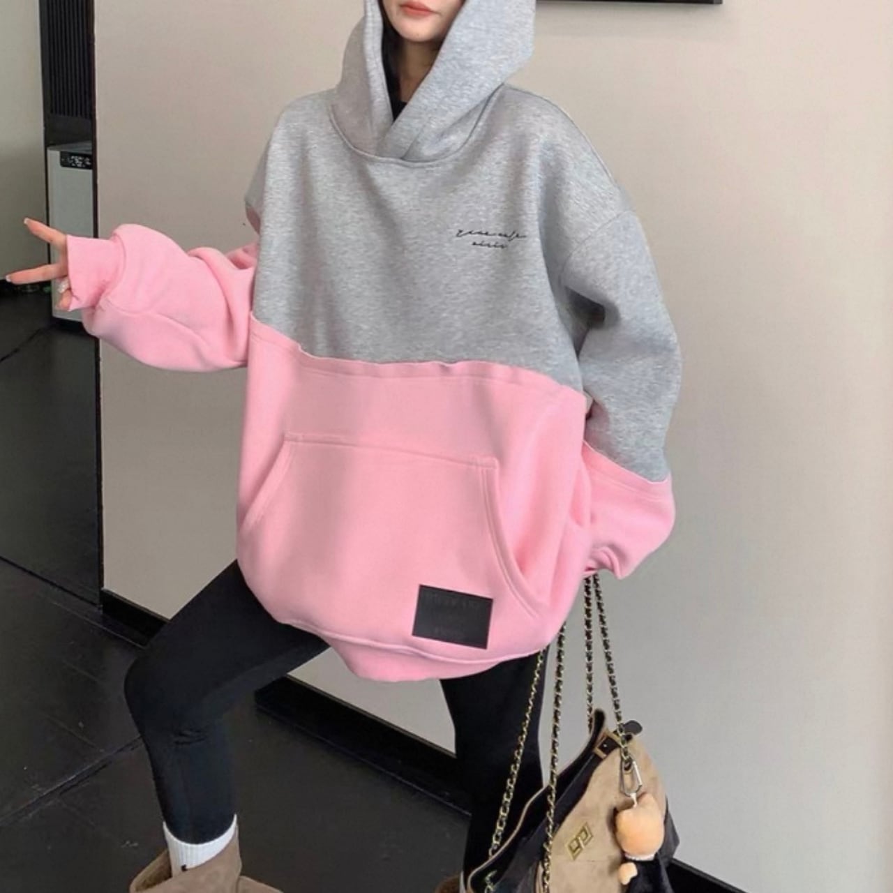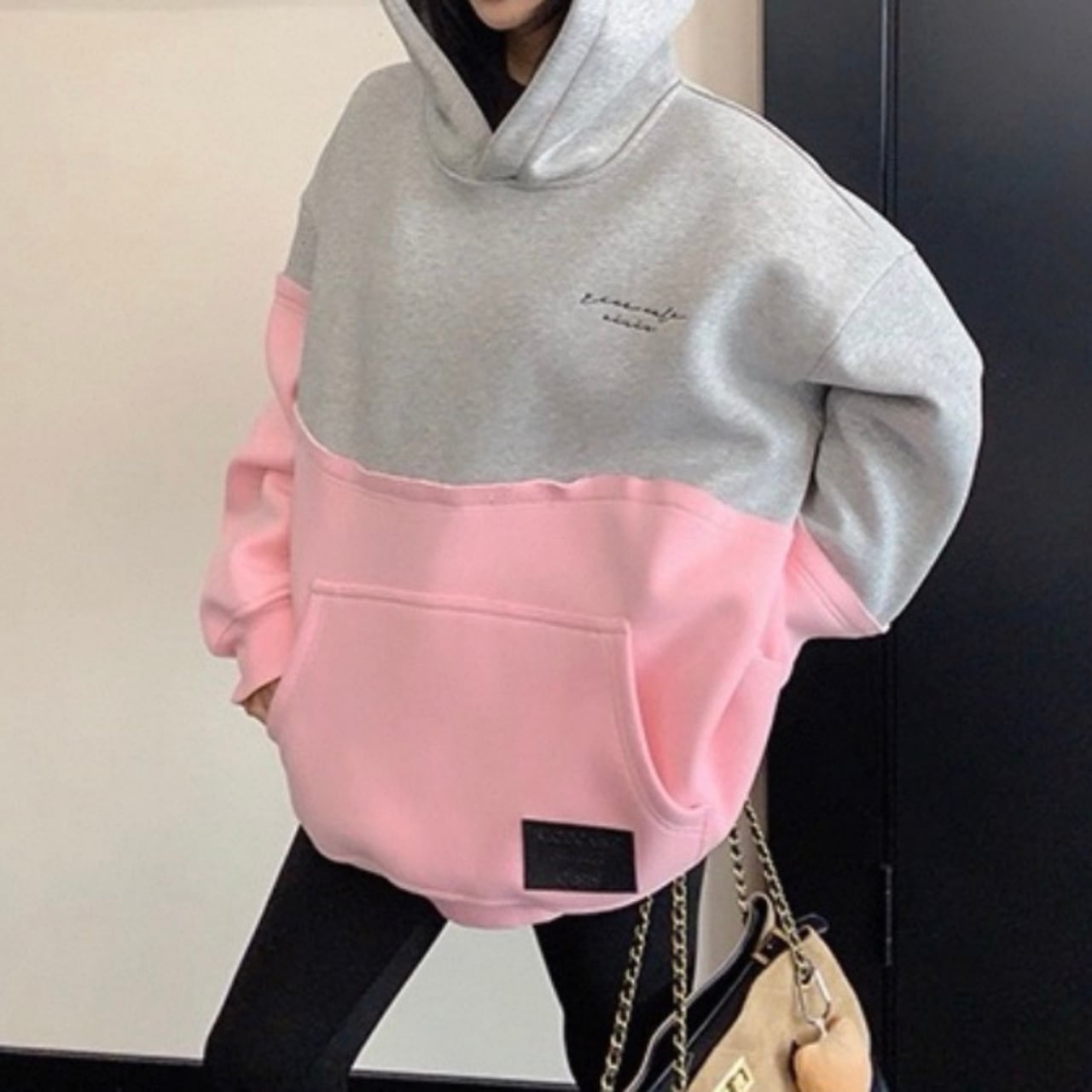 フード付き バイカラー オーバーサイズ スウェットシャツ◆ 2col BL0493