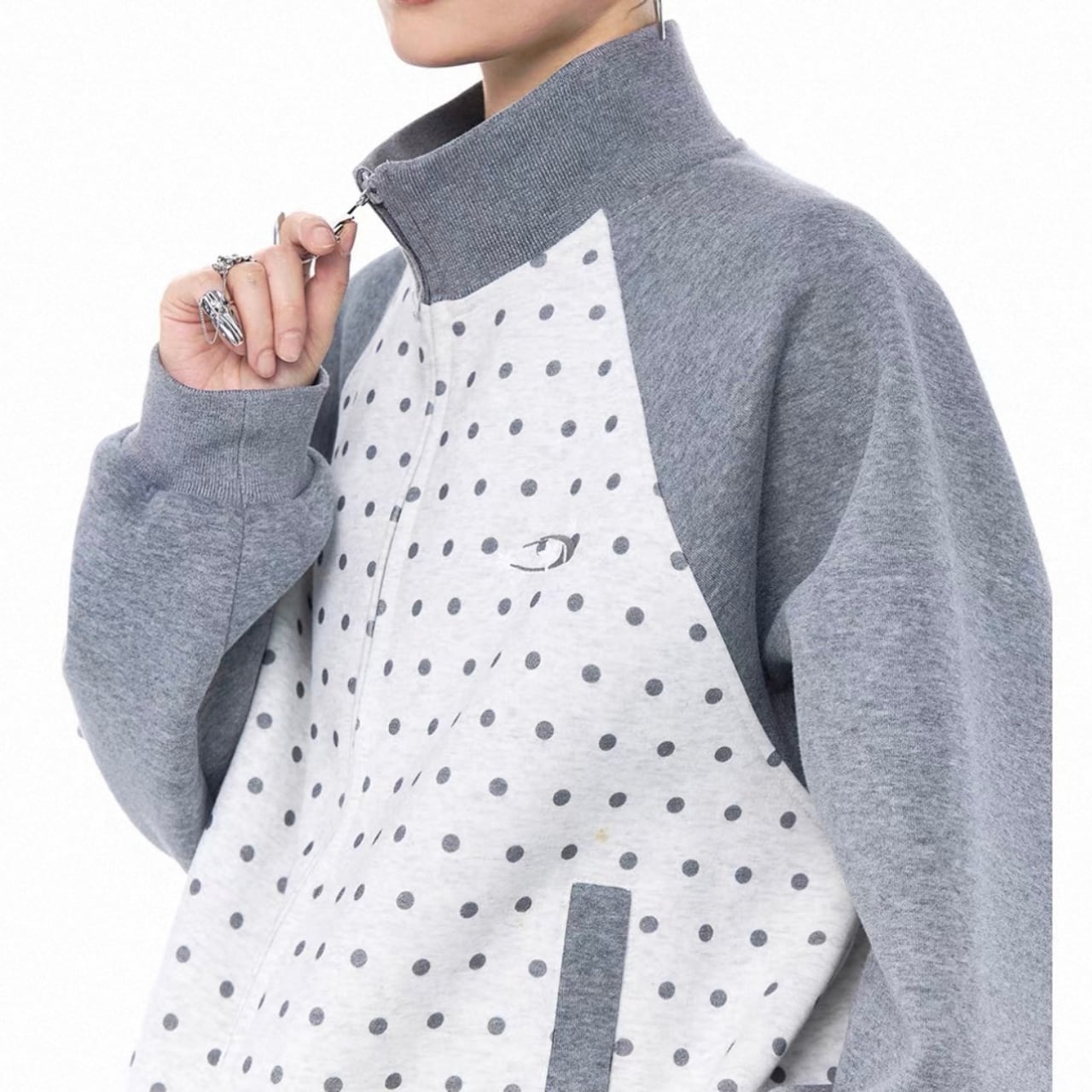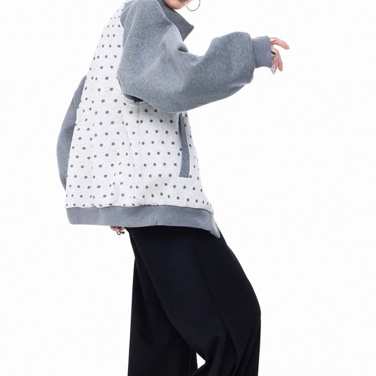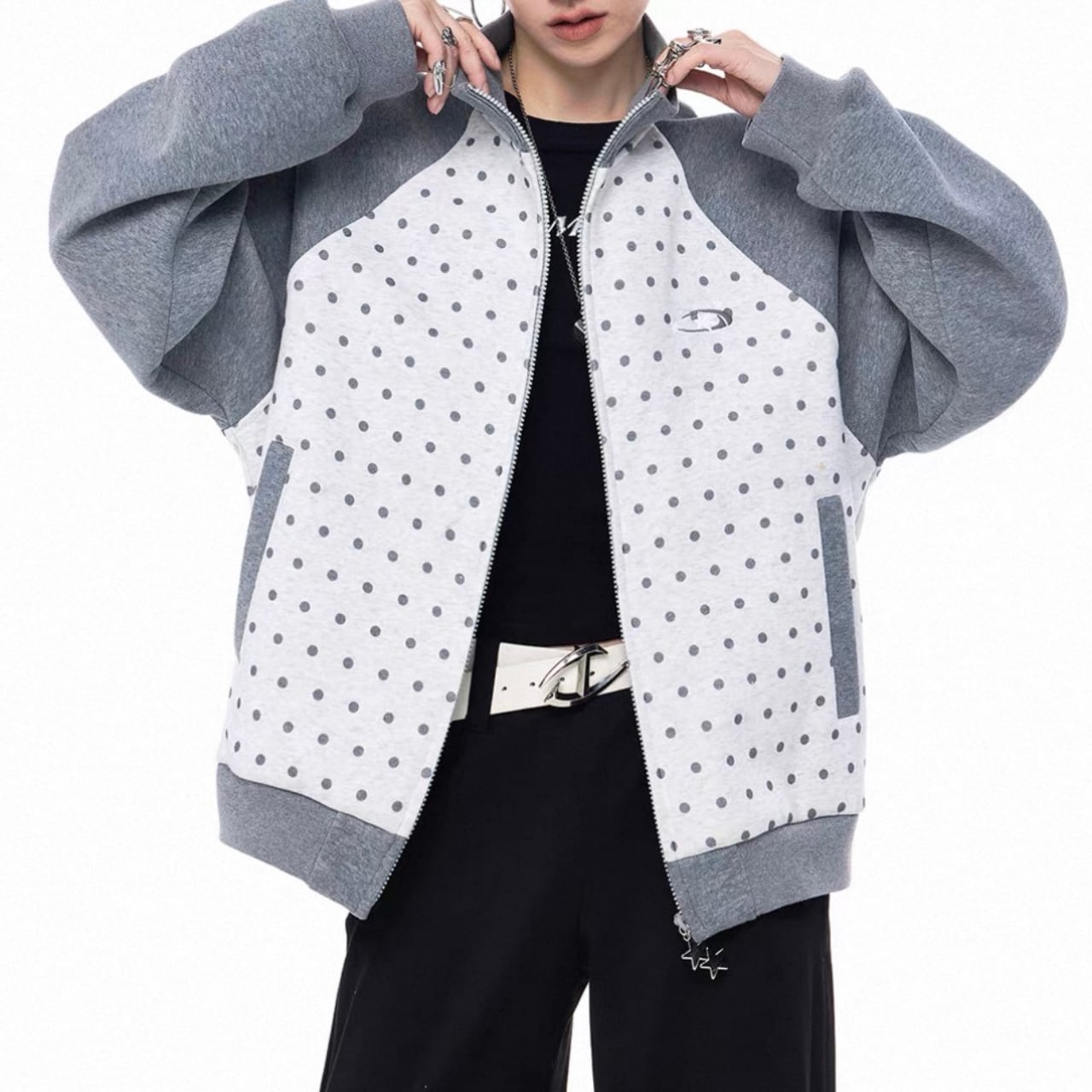 ドット柄の切り替えデザインが目を引く、フルジップブルゾン。