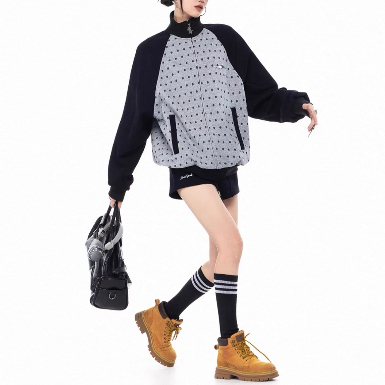 長袖 ドット パネル フルジップ ブルゾン◆ 2col BL0500