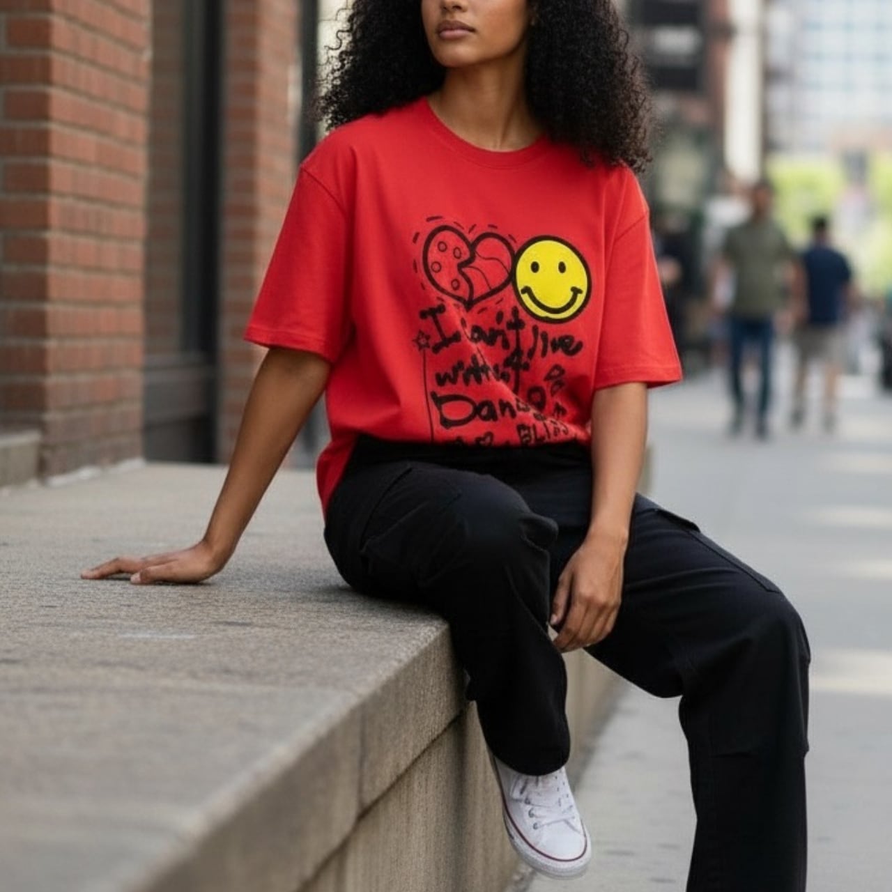 ハート&Smile手描きグラフィックshort sleeve ◆ 2col BL0506