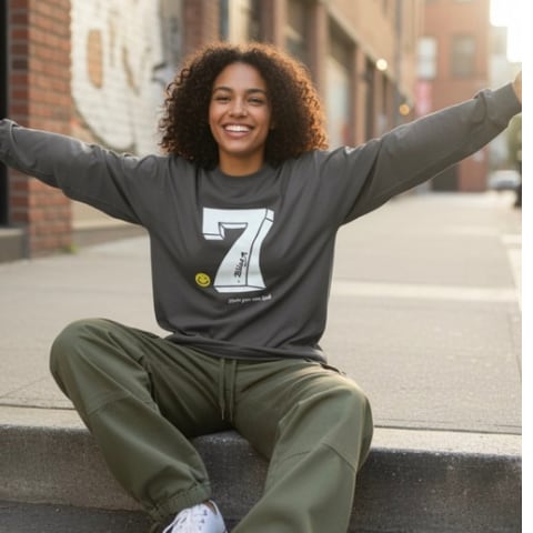立体感のあるグラフィック「7」にさりげないスマイル。
